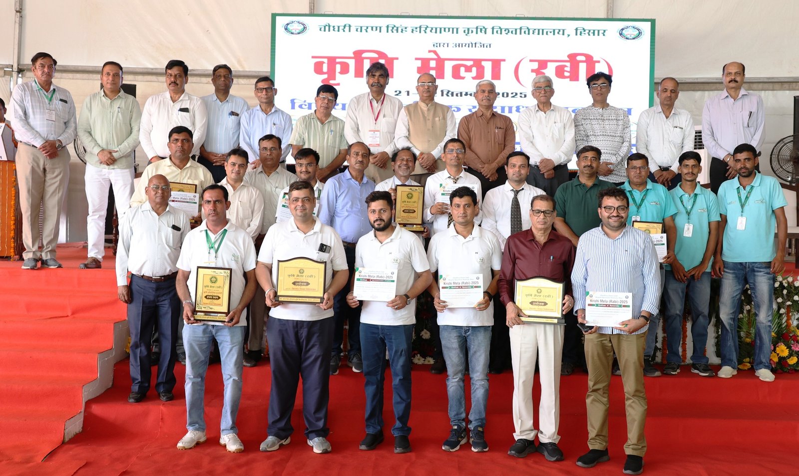 स्टॉलों में से सीड गु्रप में शक्तिवर्धक/समग सीड्स प्रथम, आईएफएसए सीड्स द्वितीय तथा न्यूजीवीडू सीड्स लिमिटेड तृतीय स्थान पर रहे। इन्सेक्टिसाइडस व पेस्टीसाइडस ग्रुप में क्रिस्टल क्रॉप सांइस प्रथम, बायर क्रॉप सांइस द्वितीय व कोरोमंडल तृतीय स्थान पर रहे। फर्टिलाइजर ग्रुप में हैबिटैट पहले, यारा दूसरे व कृभको तीसरे स्थान पर रहे। मशीनरी व ट्रेक्टर गु्रप में बरवाला एग्रो सर्विस प्रथम, फील्ड मारशल कम्पनी द्वितीय व राठी ग्रीन हाउस तृतीय स्थान पर रहे। प्रगतिशील किसान समूह में सुभाष कंबोज, एसएस ऑर्गेनिक फार्मिंग तथा नूर ऑर्गेनिक/योगेन्द्र मशरूम क्रमश: पहले, दूसरे व तीसरे स्थान पर रहे। इसी प्रकार हरियाणा कृषि विश्वविद्यालय के तिलहन अनुभाग (जीपीबी), एचएयू मार्ट/सब्जी विभाग तथा इंदिरा चक्रवर्ती सामुदायिक विज्ञान महाविद्यालय को क्रमश: प्रथम, द्वितीय व तृतीय पुरस्कार मिले। सरकारी विभाग कैटेगरी में बागवानी विभाग, हरियाणा सरकार व लुवास/एमएचयू/मत्स्य विभाग, हरियाणा सरकार, पहले व दूसरे स्थान पर रहे। विविध ग्रुप में वेक्स्टर हेल्थ केयर, फिलोजोइक फार्मा व हिन्दुस्तान गम/ऑगेनिक हरियाली नर्सरी पहले, दूसरे व तीसरे स्थान पर रहे।