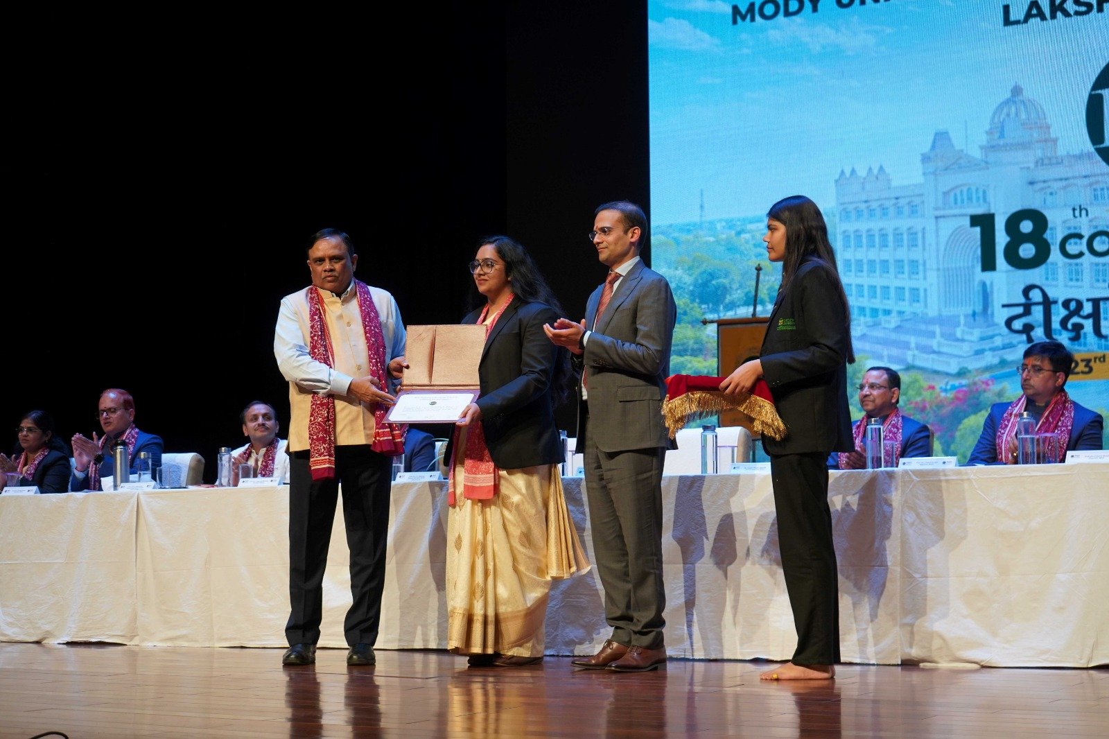 मोदी विज्ञान एवं प्रौद्योगिकी विश्वविद्यालय18वां दीक्षांत समारोह में विश्वविद्यालय की मेधावी छात्राओं को उनकी शैक्षणिक उपलब्धियों के लिए विभिन्न स्वर्ण पदकों से सम्मानित किया गया